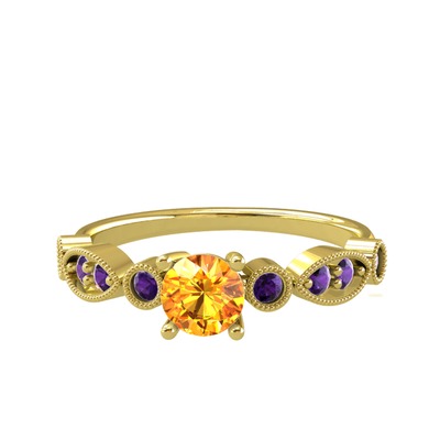 Sitrin ve ametist 8 ayar altın yüzük