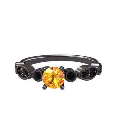 Sitrin ve siyah zirkon 925 ayar siyah rodyum kaplama gümüş yüzük