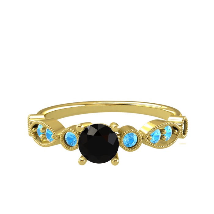 Siyah zirkon ve akuamarin 925 ayar altın kaplama gümüş yüzük