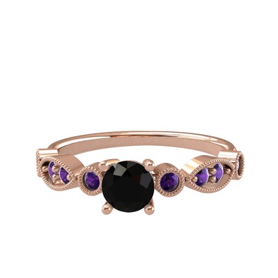 Siyah zirkon ve ametist 8 ayar rose altın yüzük