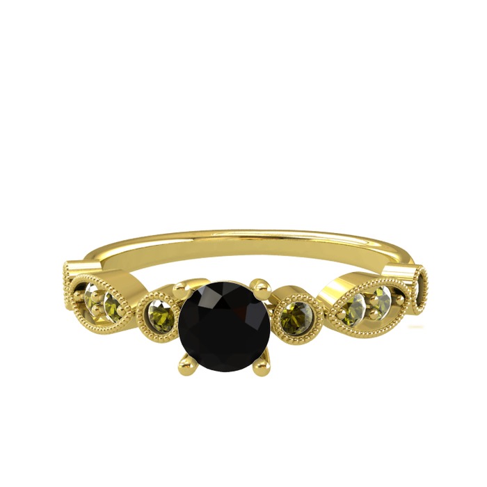 Siyah zirkon ve peridot 18 ayar altın yüzük