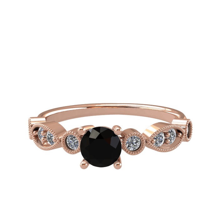 Siyah zirkon ve pırlanta 8 ayar rose altın yüzük (0.288 karat)