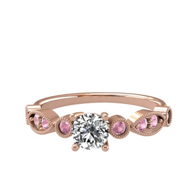 Swarovski ve pembe kuvars 14 ayar rose altın yüzük