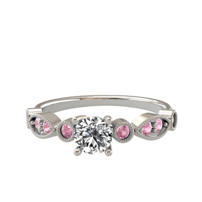Swarovski ve pembe kuvars 8 ayar beyaz altın yüzük