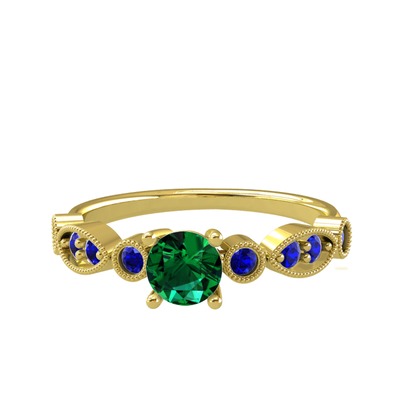 Yeşil kuvars ve lab safir 925 ayar altın kaplama gümüş yüzük