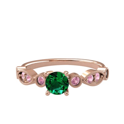 Yeşil kuvars ve pembe kuvars 14 ayar rose altın yüzük