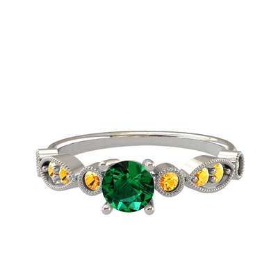 Yeşil kuvars ve sitrin 14 ayar beyaz altın yüzük