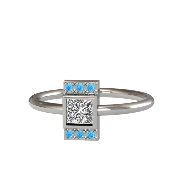Pırlanta ve akuamarin 8 ayar beyaz altın yüzük (0.39 karat)