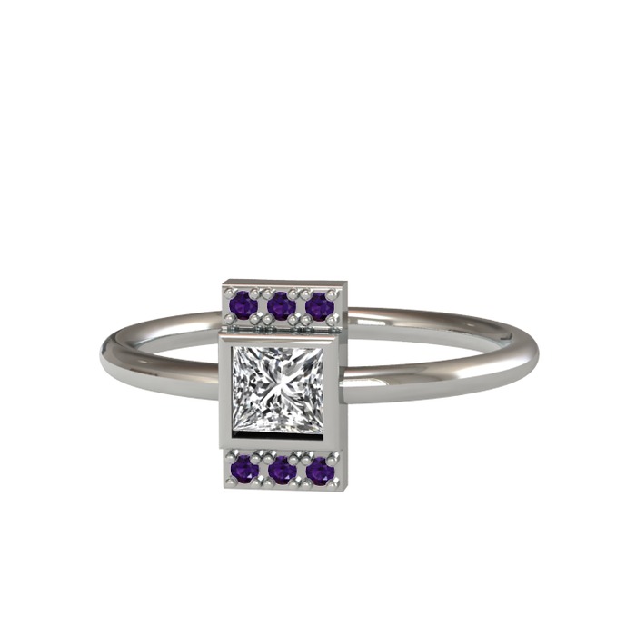 Pırlanta ve ametist 14 ayar beyaz altın yüzük (0.39 karat)