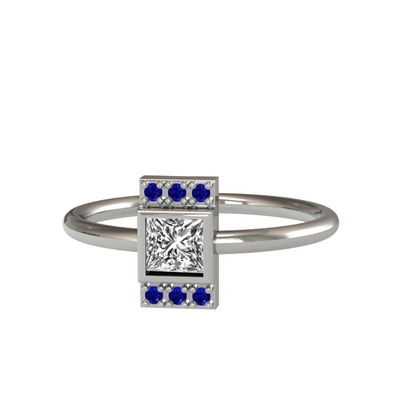 Swarovski ve lab safir 14 ayar beyaz altın yüzük
