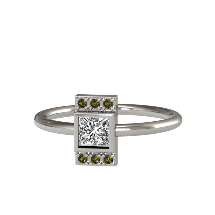 Swarovski ve peridot 14 ayar beyaz altın yüzük