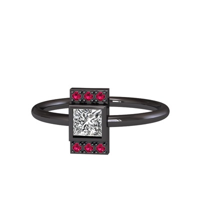 Swarovski ve rodolit garnet 925 ayar siyah rodyum kaplama gümüş yüzük