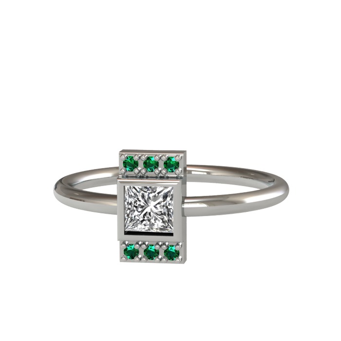 Swarovski ve yeşil kuvars 8 ayar beyaz altın yüzük