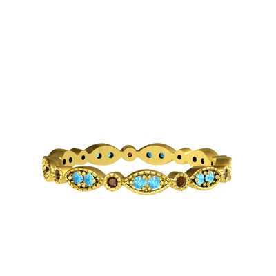 Akuamarin ve dumanlı kuvars 14 ayar altın yüzük