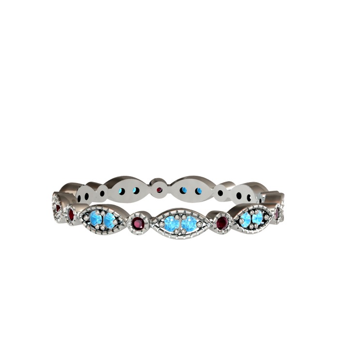 Akuamarin ve kök yakut 18 ayar beyaz altın yüzük