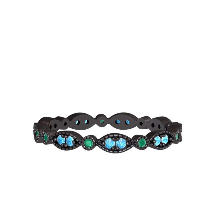 Akuamarin ve kök zümrüt 925 ayar siyah rodyum kaplama gümüş yüzük