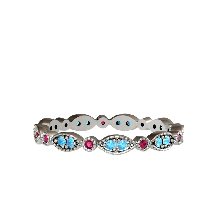Akuamarin ve rodolit garnet 14 ayar beyaz altın yüzük