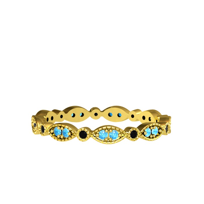Akuamarin ve siyah zirkon 8 ayar altın yüzük