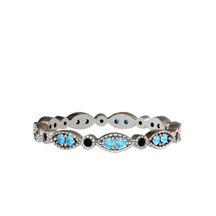 Akuamarin ve siyah zirkon 8 ayar beyaz altın yüzük