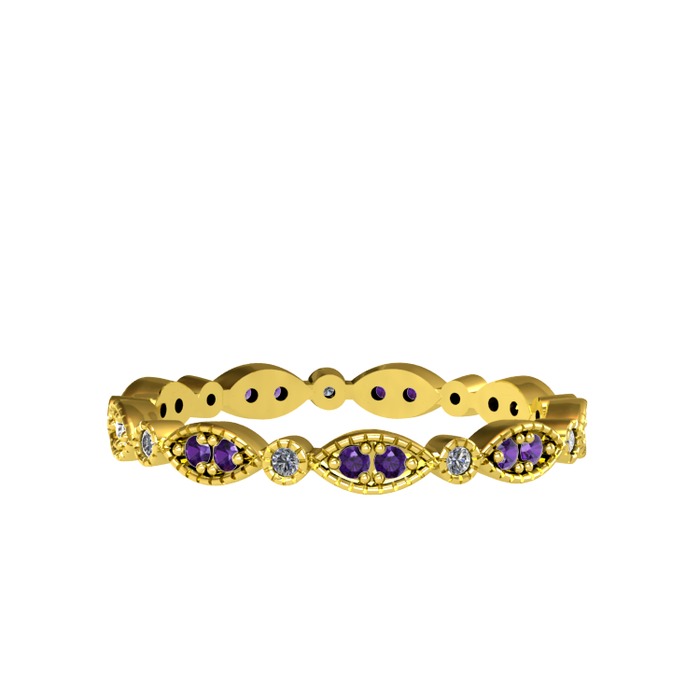 Ametist ve elmas 8 ayar altın yüzük (0.099 karat)