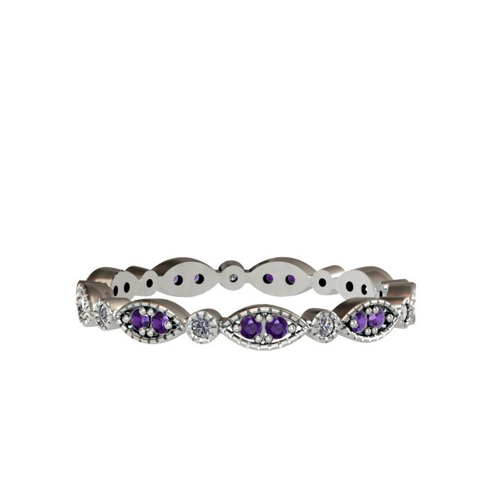 Ametist ve elmas 8 ayar beyaz altın yüzük (0.099 karat)