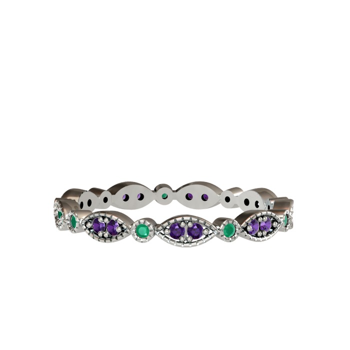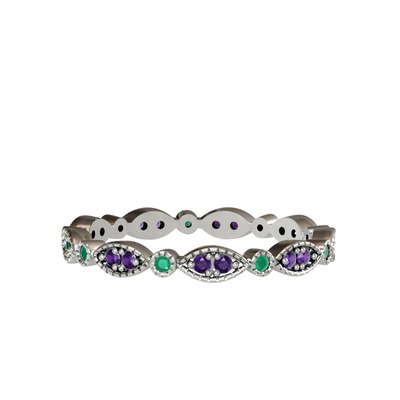 Ametist ve kök zümrüt 925 ayar gümüş yüzük