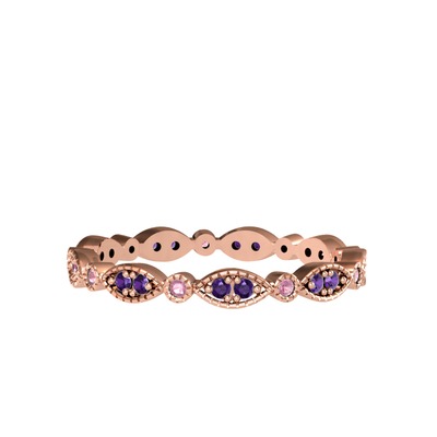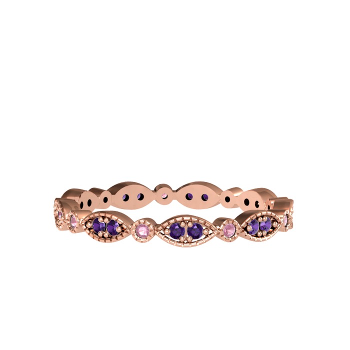 Ametist ve pembe kuvars 18 ayar rose altın yüzük