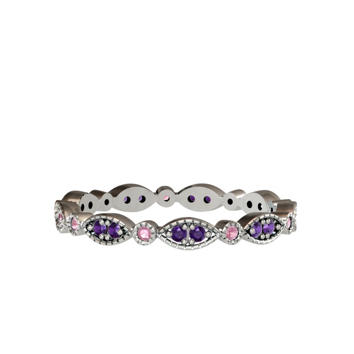 Ametist ve pembe kuvars 925 ayar gümüş yüzük