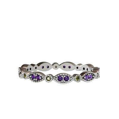 Ametist ve peridot 8 ayar beyaz altın yüzük