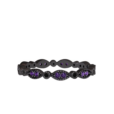 Ametist ve siyah zirkon 925 ayar siyah rodyum kaplama gümüş yüzük