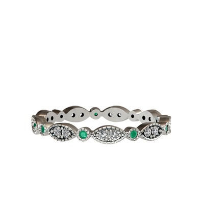 Beyaz zirkon ve kök zümrüt 925 ayar gümüş yüzük