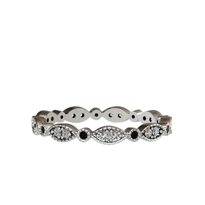 Beyaz zirkon ve siyah zirkon 14 ayar beyaz altın yüzük