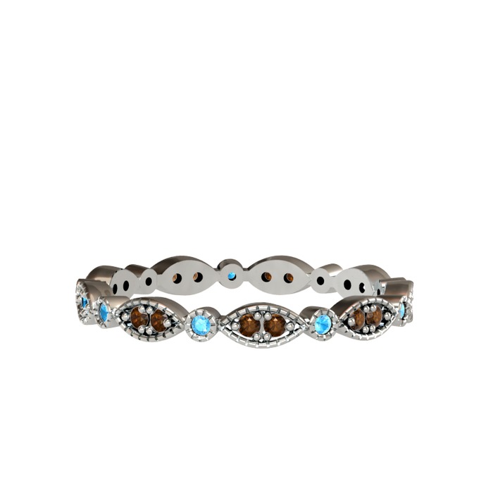 Dumanlı kuvars ve akuamarin 925 ayar gümüş yüzük