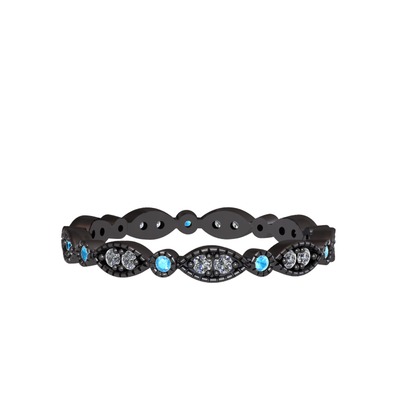 Elmas ve akuamarin 925 ayar siyah rodyum kaplama gümüş yüzük (0.198 karat)