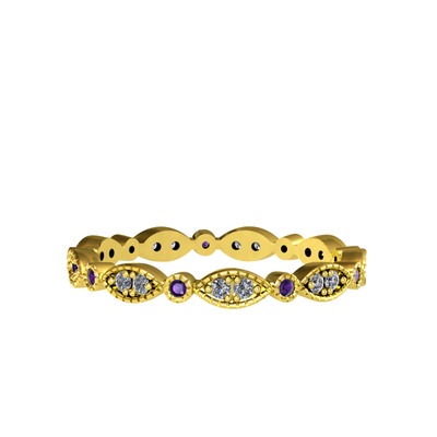 Elmas ve ametist 14 ayar altın yüzük (0.198 karat)