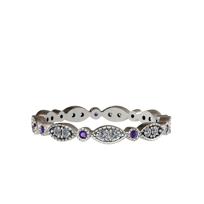 Elmas ve ametist 14 ayar beyaz altın yüzük (0.198 karat)