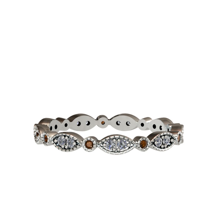 Elmas ve dumanlı kuvars 8 ayar beyaz altın yüzük (0.198 karat)