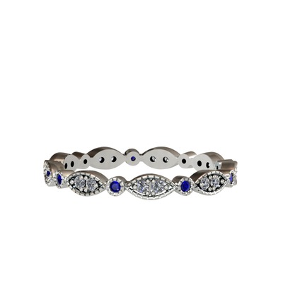 Elmas ve lab safir 925 ayar gümüş yüzük (0.198 karat)