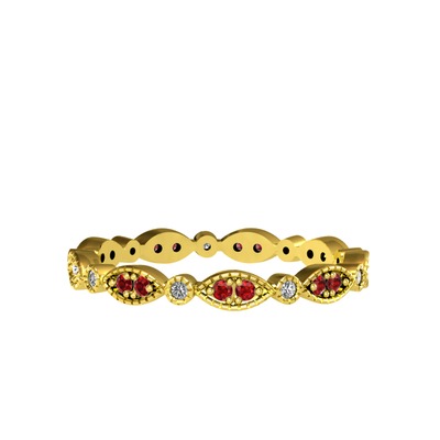 Garnet ve beyaz zirkon 18 ayar altın yüzük