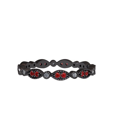 Garnet ve pırlanta 925 ayar siyah rodyum kaplama gümüş yüzük (0.099 karat)