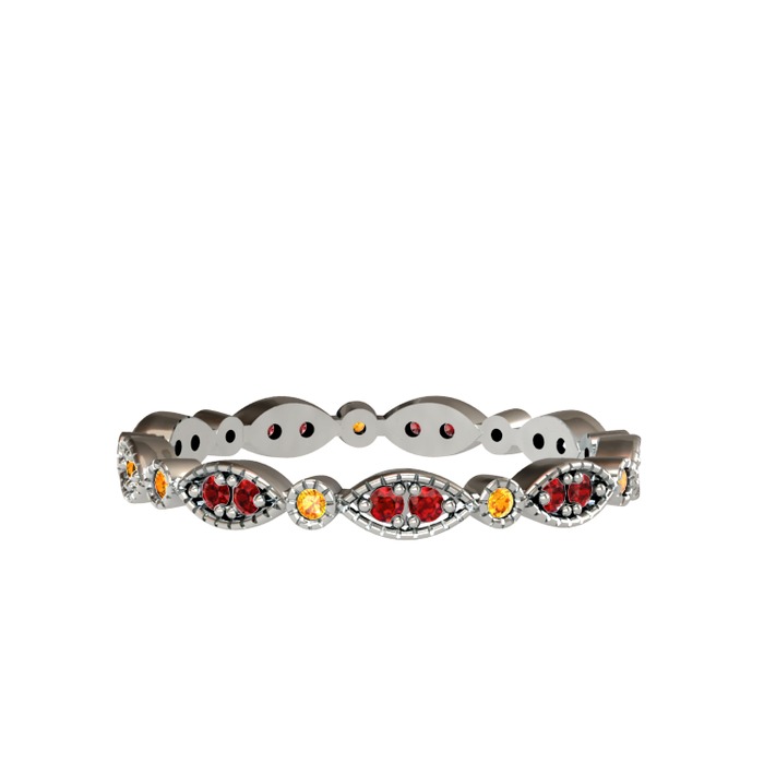 Garnet ve sitrin 14 ayar beyaz altın yüzük