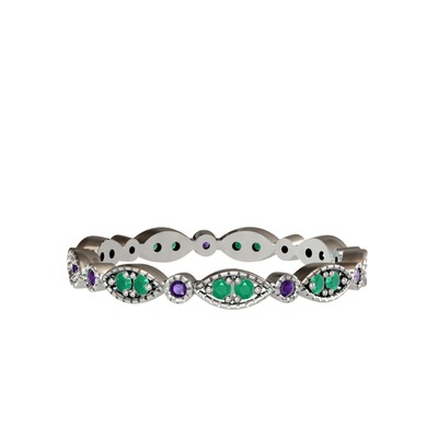 Kök zümrüt ve ametist 14 ayar beyaz altın yüzük