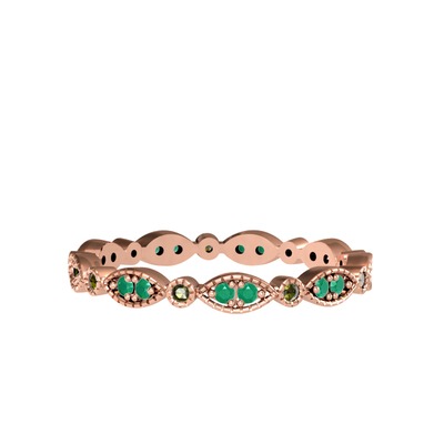 Kök zümrüt ve peridot 14 ayar rose altın yüzük