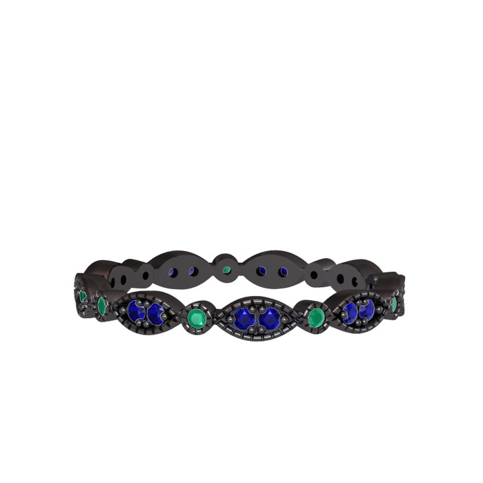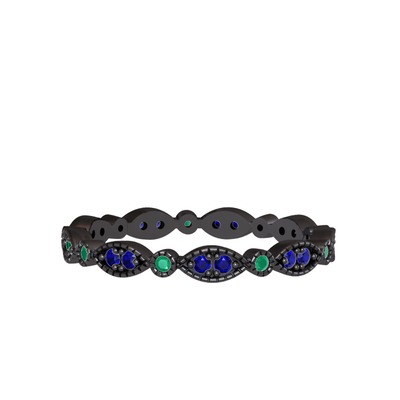 Lab safir ve kök zümrüt 925 ayar siyah rodyum kaplama gümüş yüzük