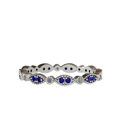 Lab safir ve pırlanta 8 ayar beyaz altın yüzük (0.099 karat)