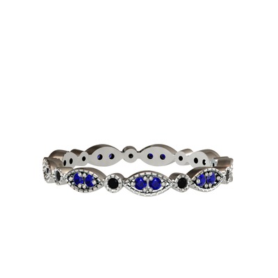 Lab safir ve siyah zirkon 925 ayar gümüş yüzük