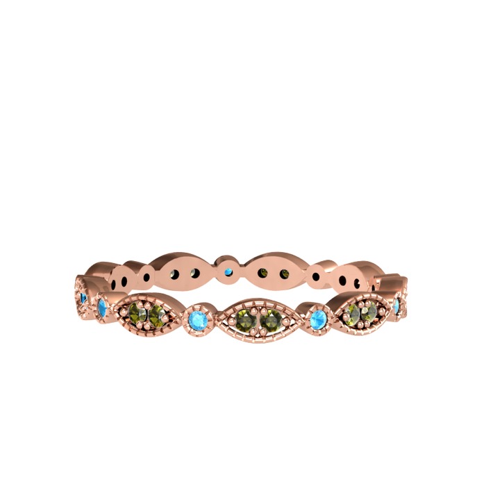 Peridot ve akuamarin 8 ayar rose altın yüzük