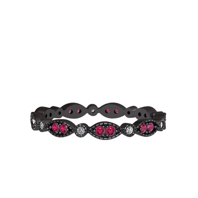 Rodolit garnet ve beyaz zirkon 925 ayar siyah rodyum kaplama gümüş yüzük