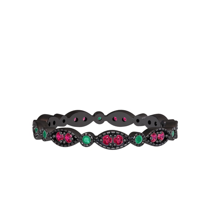 Rodolit garnet ve kök zümrüt 925 ayar siyah rodyum kaplama gümüş yüzük