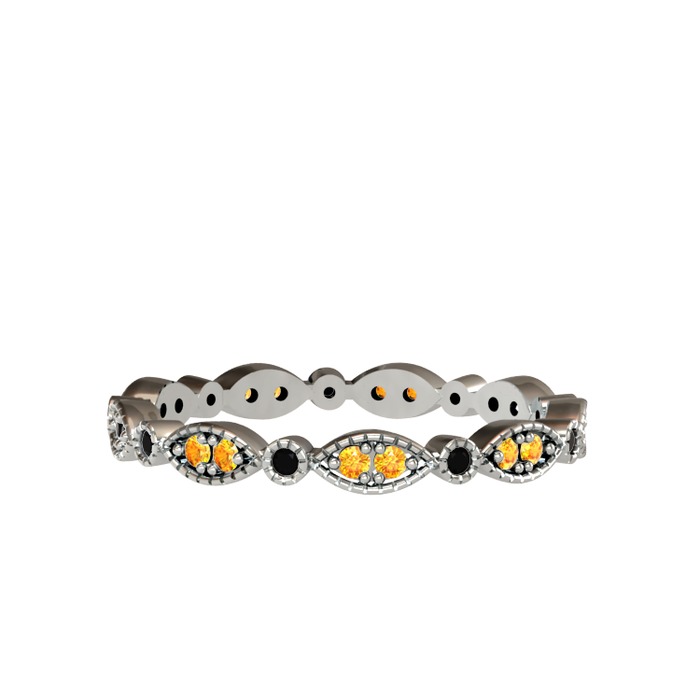 Sitrin ve siyah zirkon 18 ayar beyaz altın yüzük